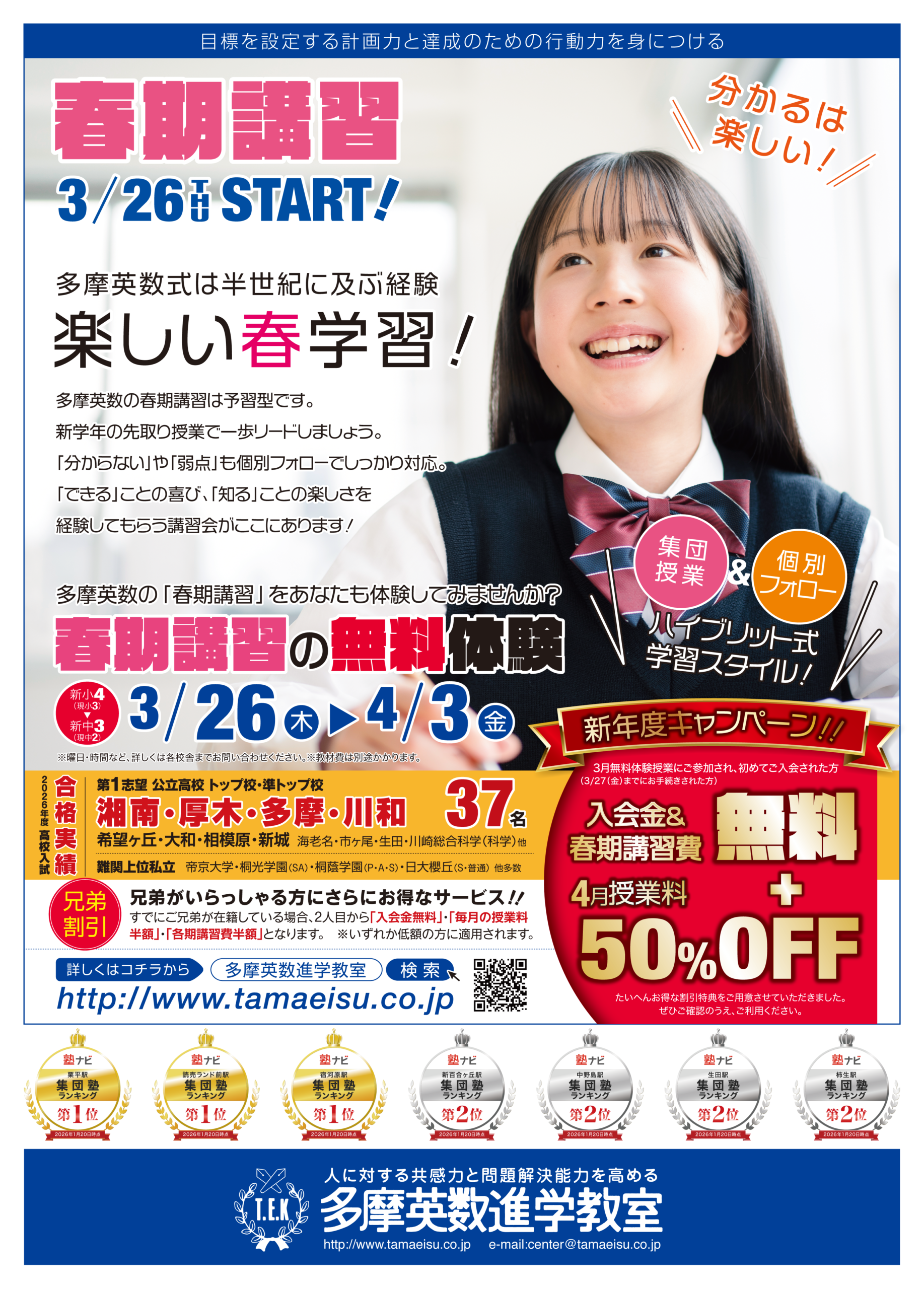 | 塾名 教室名 | 多摩英数進学教室 新百合ヶ丘校 |
