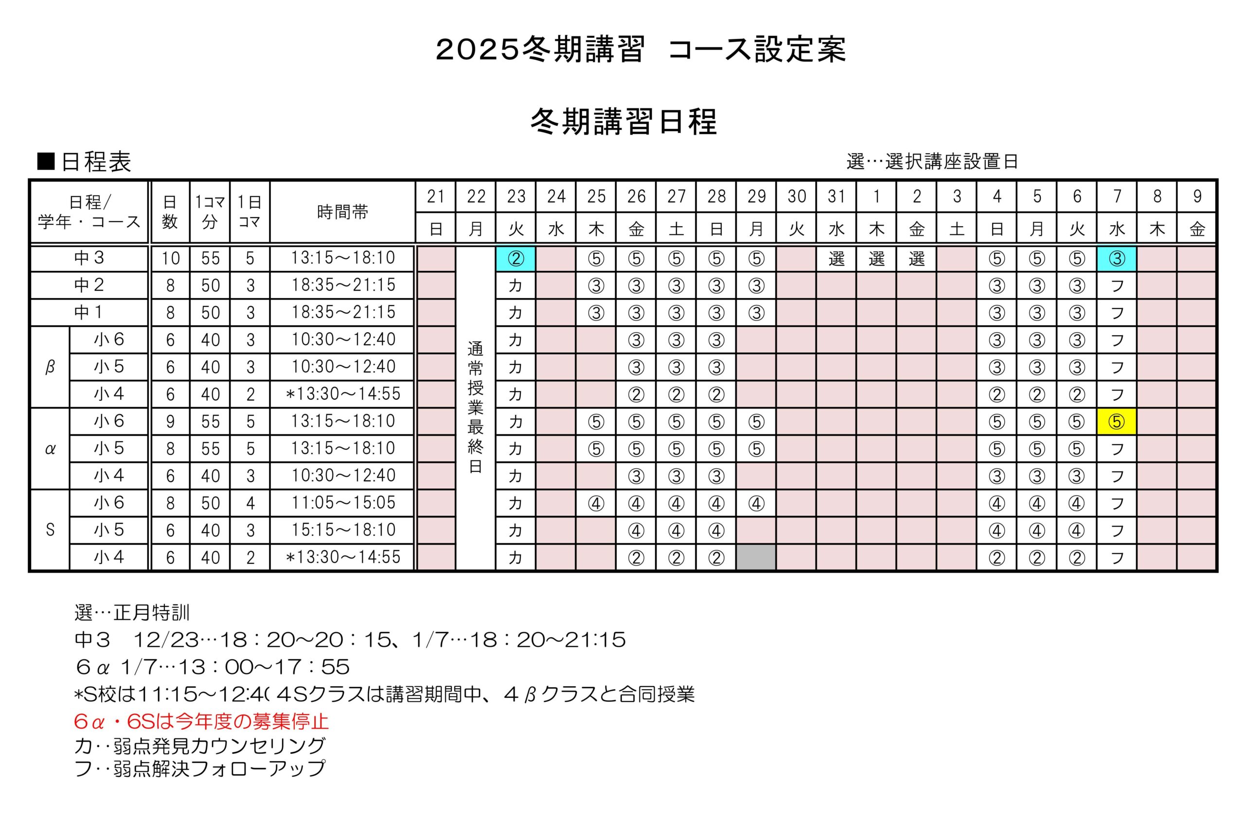冬期講習日程