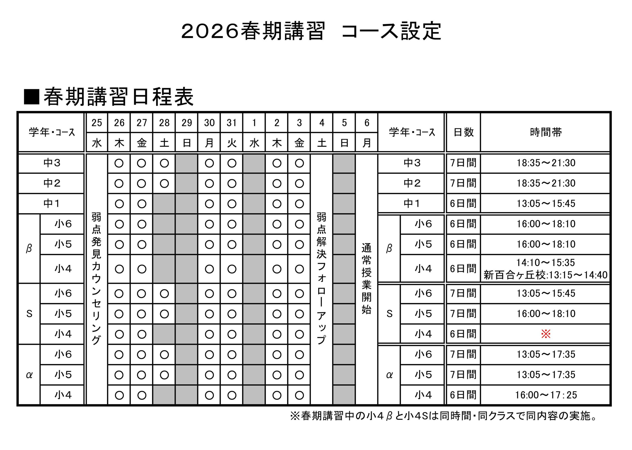 春期講習日程