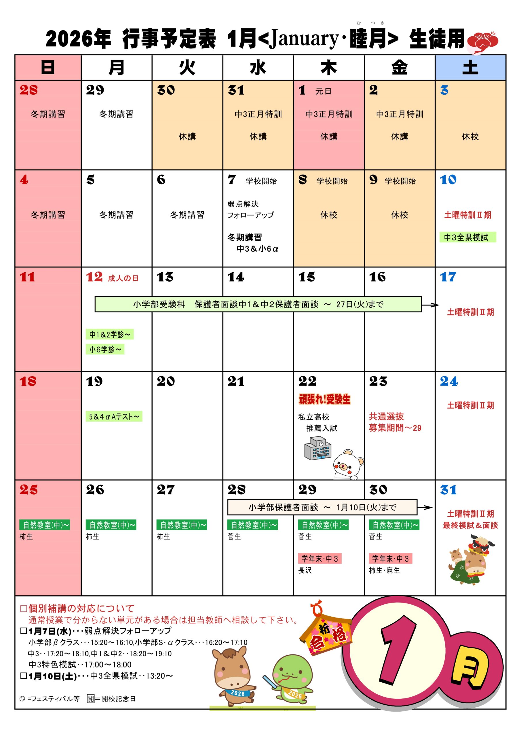 1月行事予定表 ←PDFでご覧になりたい方はこちらをクリックして下さい。